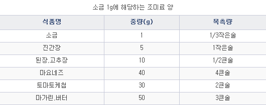 6. 또한 염분량은 소금을 기준으로 1일 3g만 추가하도록 합니다.